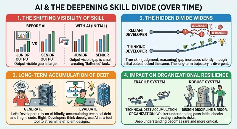 This means developers with different levels of experience can produce outputs that look similar on the surface.