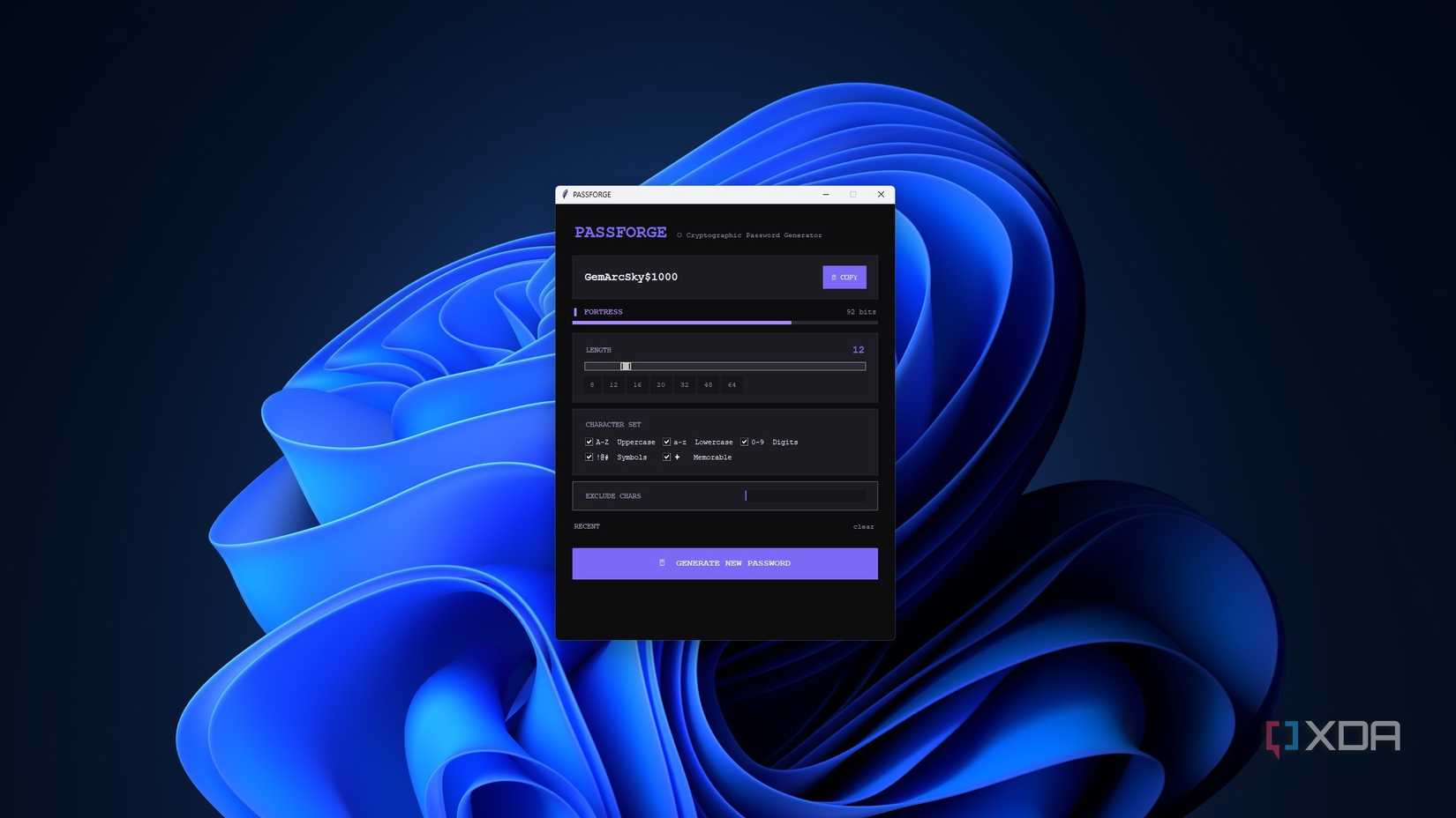 I asked Claude to build a Python-based password generator to handle this exact headache, and it nailed the logic on the very first prompt (with a remarkably clean UI, I might add). The generator gives almost complete control over the output, letting me toggle specific character sets, set lengths with a slider, and even exclude problematic characters that trip up these systems.