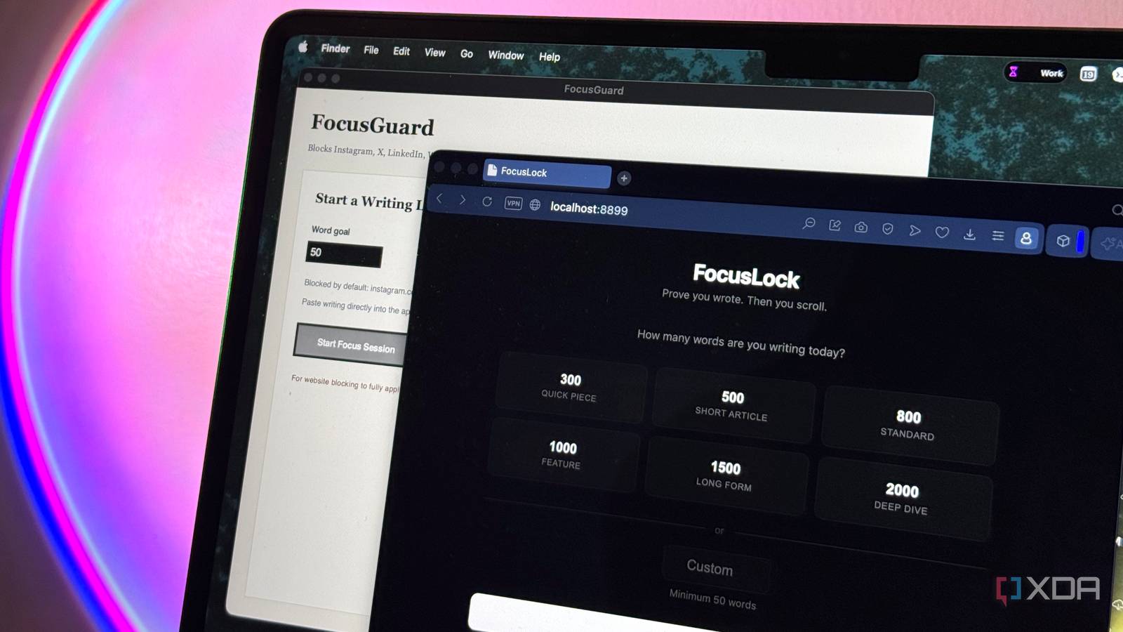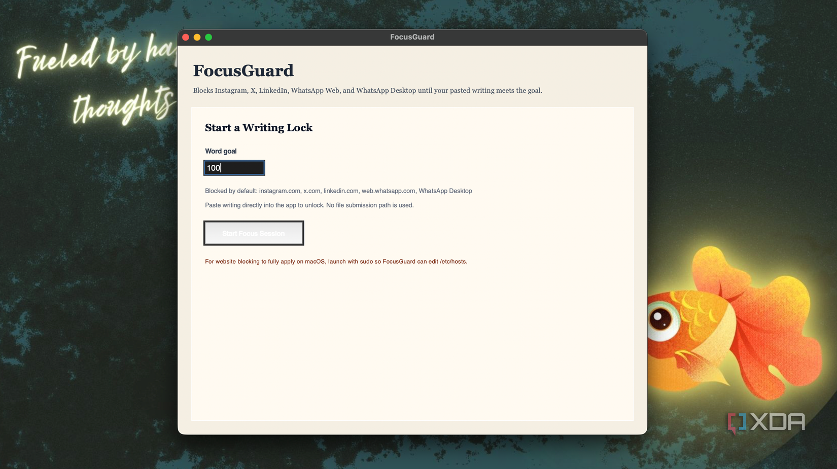 hey! is it possible to make a tool where like….it blocks certain apps and websites (in my case, whatsapp desktop and websites like instagram and X and linkedin etc) that i know would distract me until i paste in proof that i’ve done my work and written like 1000 words (or whatever goal i set)
