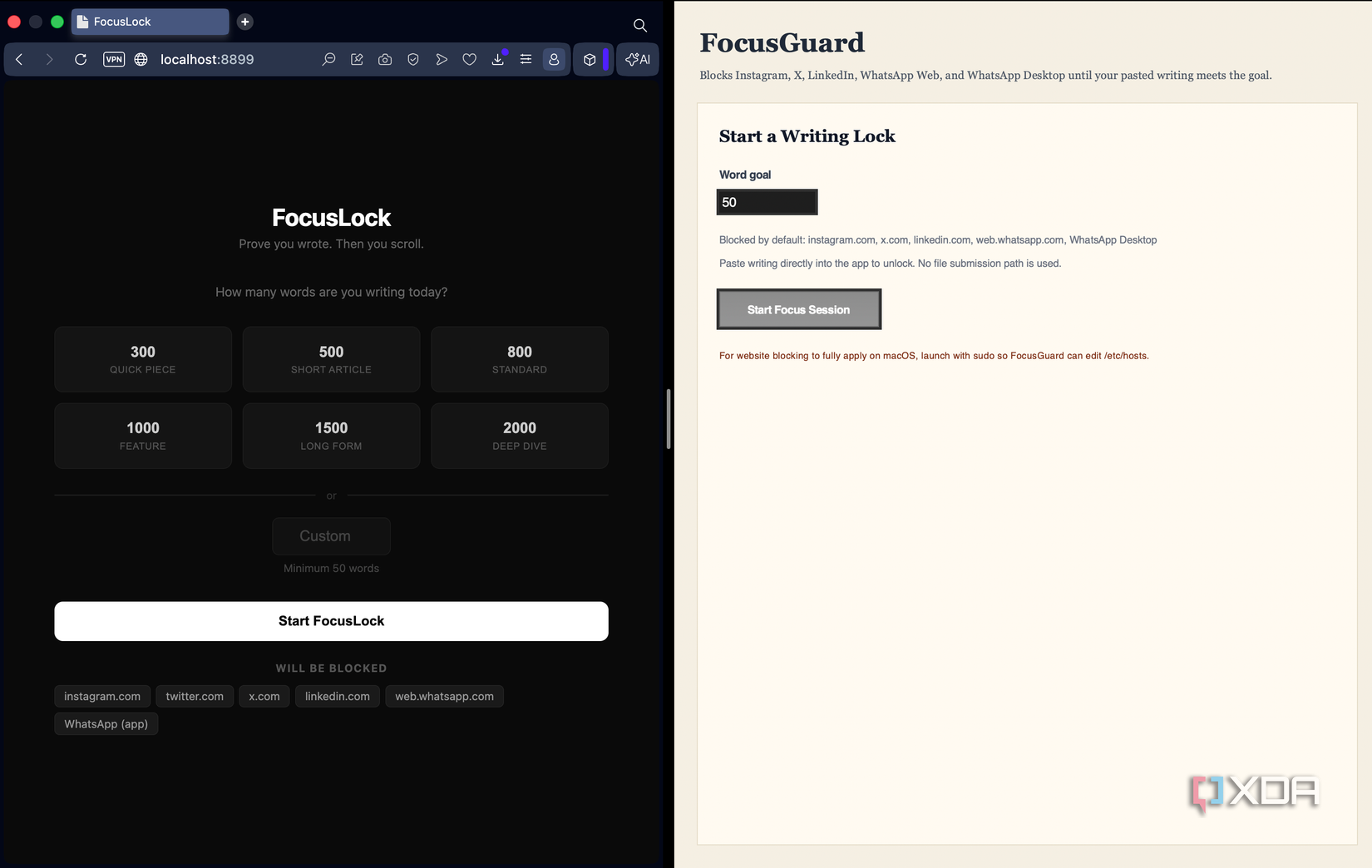 Codex took a slightly different approach. Its version, FocusGuard, runs as an actual desktop app using Python’s built-in tkinter library. You don’t need a browser to run it. I actually liked that about it since it felt more like a real tool living on my device! Similar to Claude Code’s version, the UI of Codex’s tool was minimalist and nice to look at. Under the hood, both tools work similarly. They edit your system’s hosts file to block websites and use process killing to shut down apps like WhatsApp whenever they try to run!