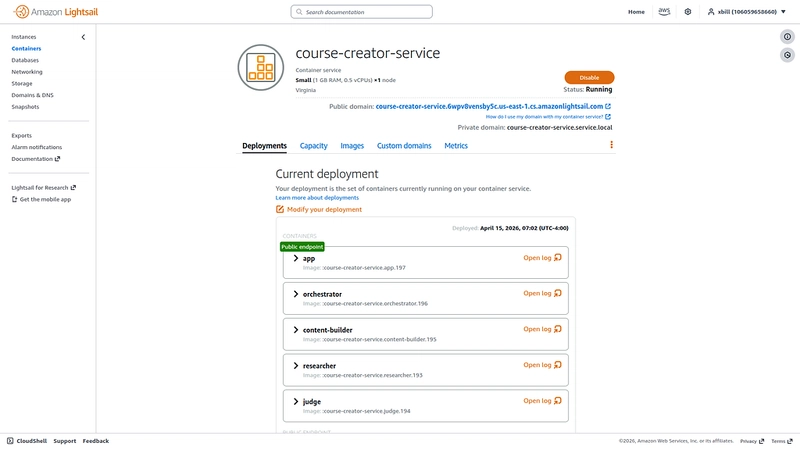 A utility script does the deployment to Lightsail. You can submit the build for cloud deployment: