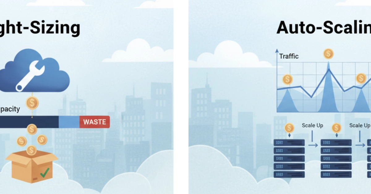 If you only auto-scale, you are efficiently managing a wasteful architecture. If you only right-size, you are running a lean architecture that can’t breathe with your traffic.