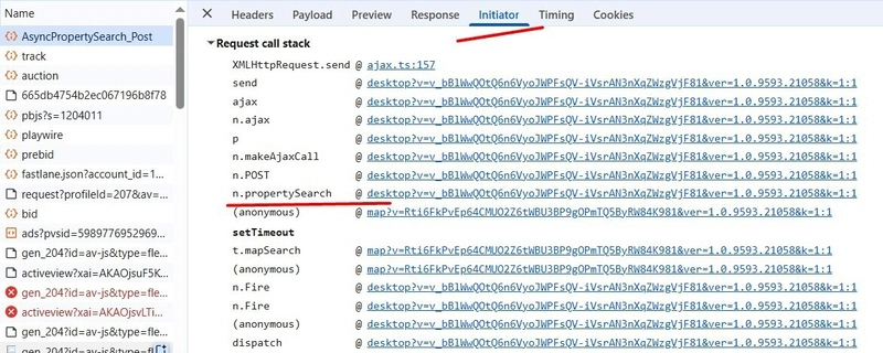 Once located, find the line in the code that triggers the call in the initiator chain and look for the assignment operation using =. If you are lost, copy all the code between two curly braces and ask AI to figure out where the search results are assigned, while it burns some trees.