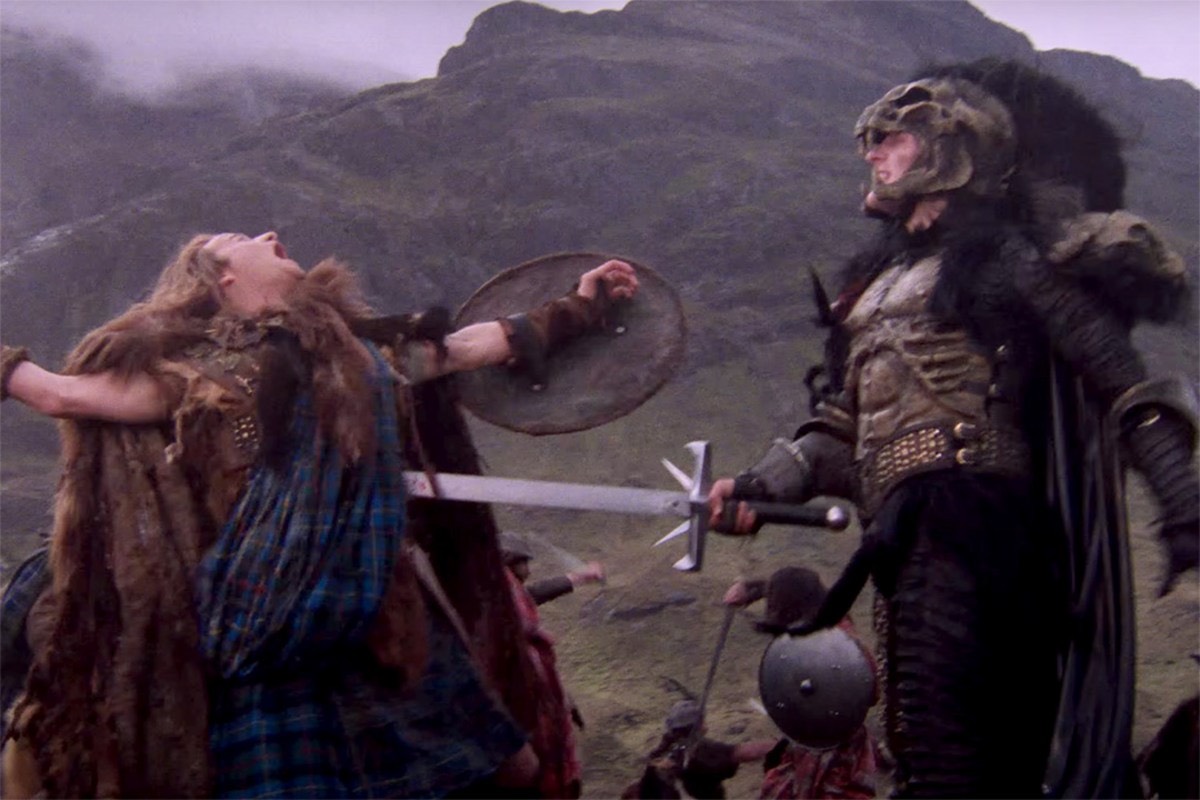 We go back to the Scottish Highlands in 1536, when MacLeod rides into battle with his clan and is fatally stabbed by a mysterious black-clad knight (Clancy Brown)—except MacLeod doesn’t die. He makes a full recovery and is driven out of his village because everyone thinks it’s witchcraft. But he rebounds, living a quietly isolated pastoral life with wife Heather (Beatie Edney), when a a wandering swordsman (Sean Connery) named Juan Sanchez-Villalobos Ramirez shows up one day.