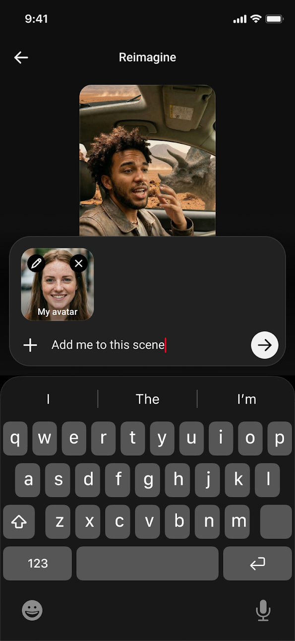Once rolled out to you, open the Create ‘+’ in the YouTube app and tap the Gemini spark in the corner. Select “Create video” in the top-left and look for “Make a video with my avatar” to enter your prompt. It’s also available in the Remix menu > Reimagine > Add me to this scene.